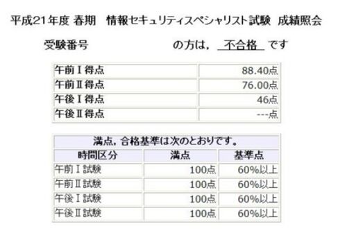 午後1でダメでした。 半分もできてなかったんですね。 セキュリティは春も秋もあるので年2回受けられるのが良いですね。 これで、次回は午前1免除になるんでしたよね。確か? 試験開始が10:50分になるのでかなりのんびりできそうです。